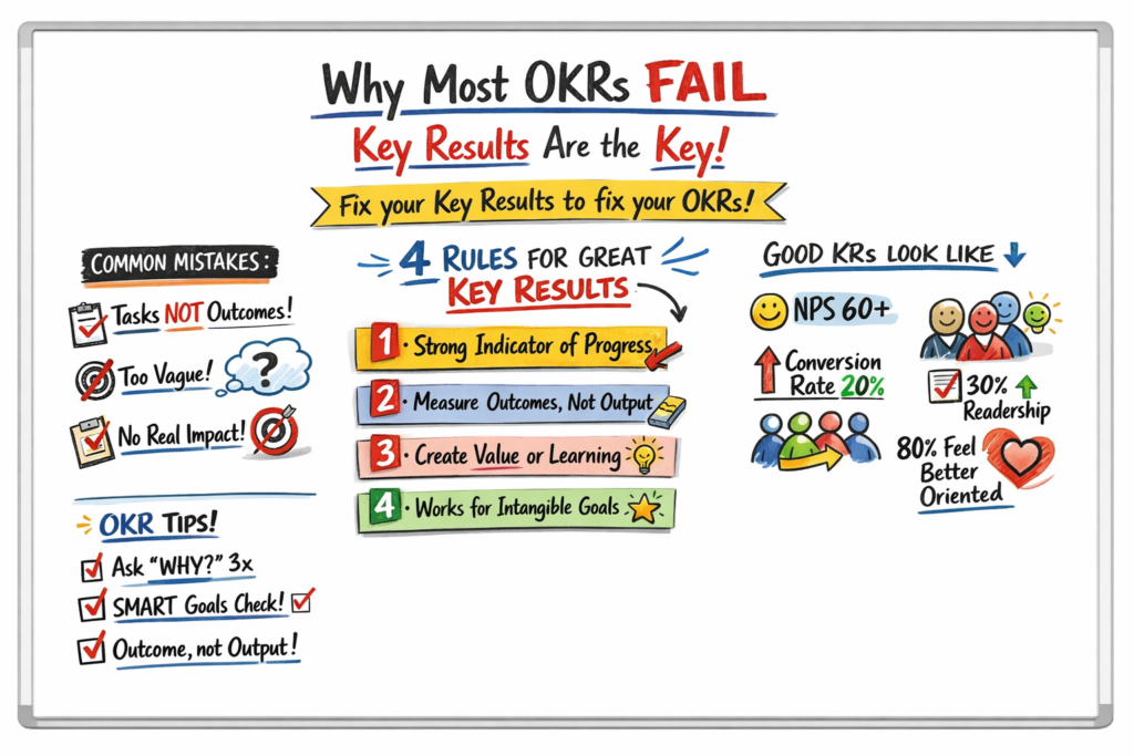 In practice, most OKR failures don’t come from bad Objectives. They come from weak, task-based, or misleading Key Results.